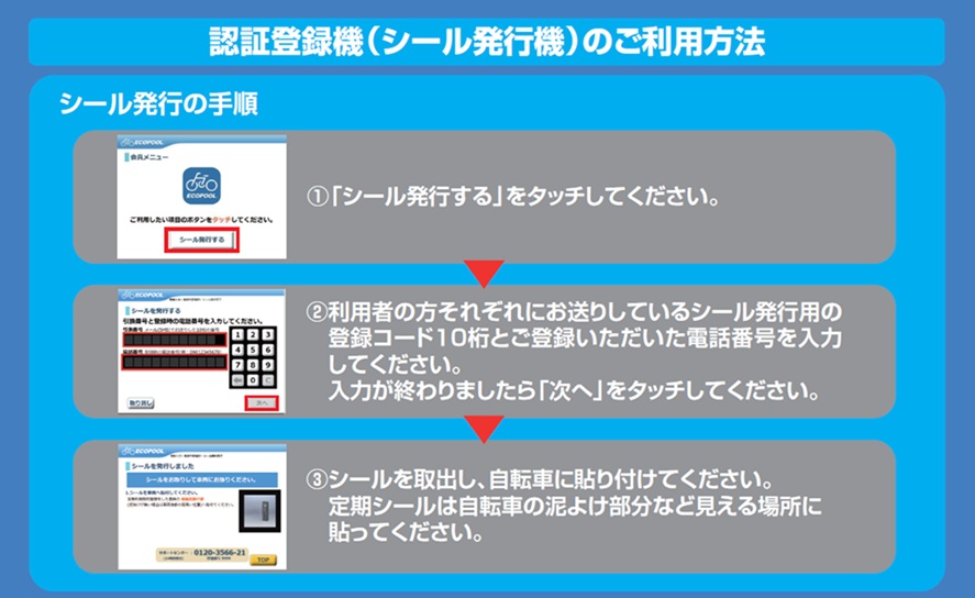 定期利用シールは自転車の後部泥除け部分など、必ず見える場所に貼ってください。